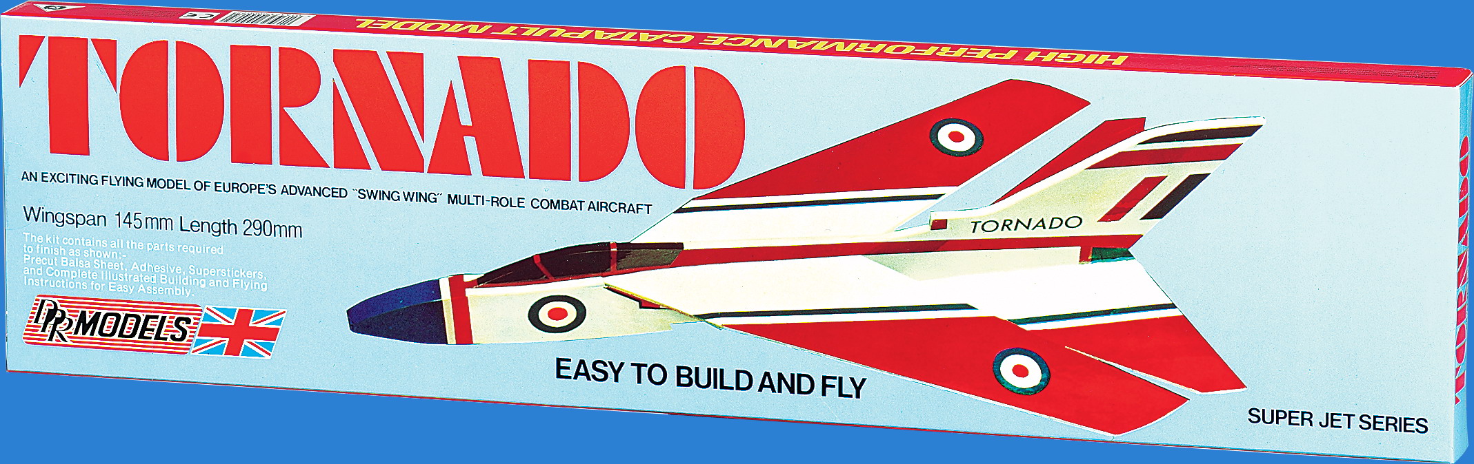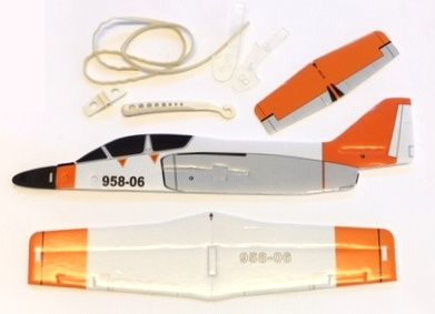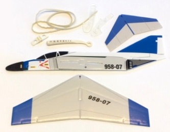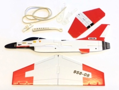 Byggesettet inneholder: utstansede balsadeler, dekaler, strikk med håndtak for utskyting samt norsk bygge og flybeskrivelse.