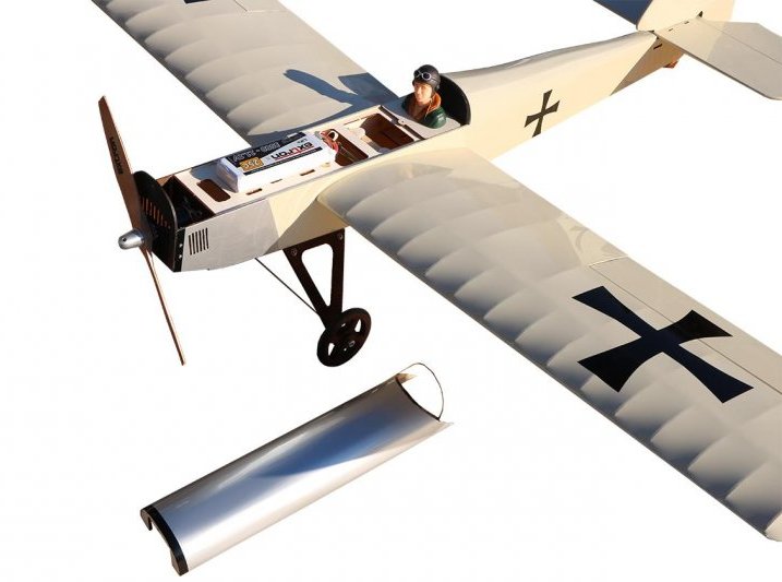 Settet inneholder: Nøyaktig laserskåret finer og balsadeler, lister, støtstenger, linker, hengsler, vingerør, hardware og fargetrykt foto byggebeskrivelse.