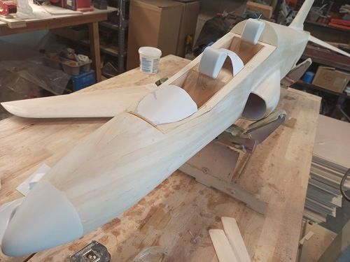 Vakumstøpt cockpitglass, nesekon, ryggstøtter for piloter.