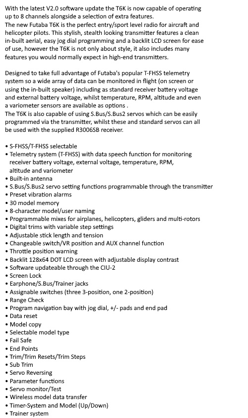 Futaba 6-ch T6K 2,4 GHz T-FHSS - P-CB6K/EU