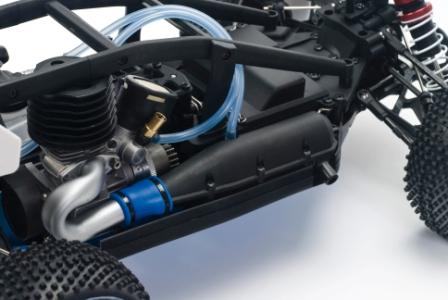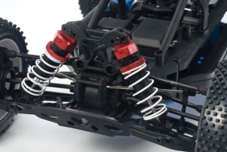 2-kanals rattradio, mottaker og kraftige servoer montert. 1/8 High-grip dekk og aluminium chassis.