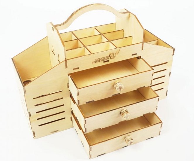 Laserskåret byggesett i 3mm bjerkefiner med 3 stk skuffer og diverse rom.