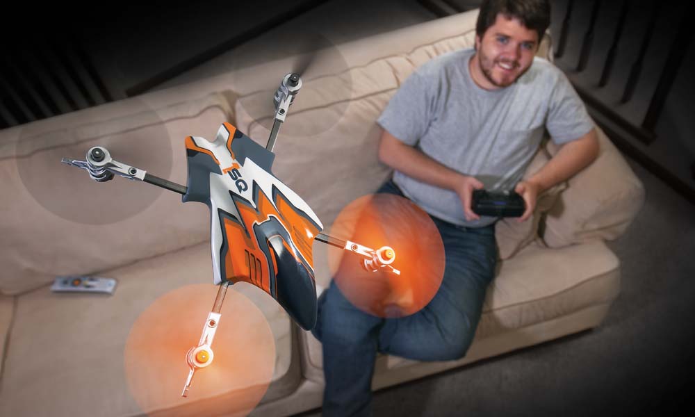 For inne og utebruk. 2,4GHz radiosystem med nybegynner og ekspertprogram. 3-akset gyrosystem gjør dronen "rock solid" stabil.