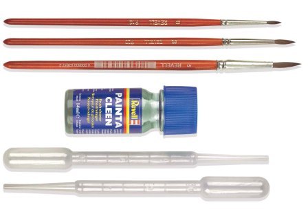 Innholder: 3 stk pensler - nr. 0,3 og 5, rengjøringsmiddel for pensler, 2 stk pipetter.