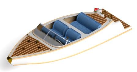 Laserkuttet finer til spanter, kjøl, sittebenker, bord og alle innredningsdetaljer.