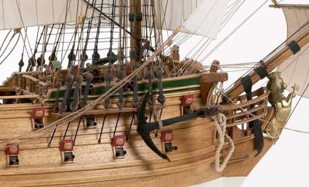 70 messingkanoner, omfattende ornamenteringer og støpt forgylt galionsfigur (løve)