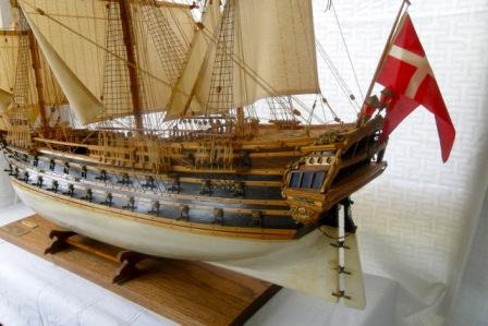 Utsøkt modell av det kjente orlogsfartøyet Norske Løve bygd i Kjøbenhavn i 1764-67.