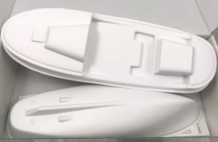 Ferdig støpt skrog og dekk, alle trematerialer til dekkshus.