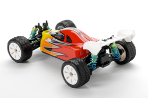 - RTR Mini Rave 1/18 Buggy ferdig bygd med lakkert karosseri og spoiler.