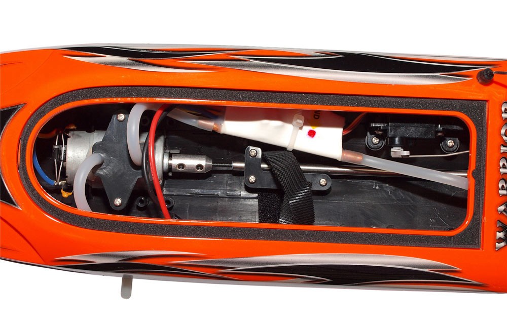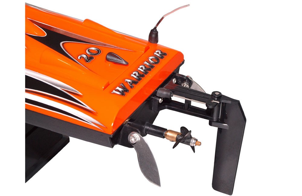 Oppdatert versjon av Warrior Offshore Lite med 2,4 GHz radiosystem og nytt drivverk. Komplett RTR- versjon for røff bruk og stor fart. Leveres med 390 vannkjølt motor, vannkjølt fartsregulator, 9gr styreservo, ror, 2-bladet nylonpropell, 2, stk styrefinner, 2-kanals 2,4 Ghz radiosender med mottaker ferdig motert. 7,4V 2 seller 800 mAh Li-Po batteri, 12V balansert lader og 9V batteri til fjernstyring.