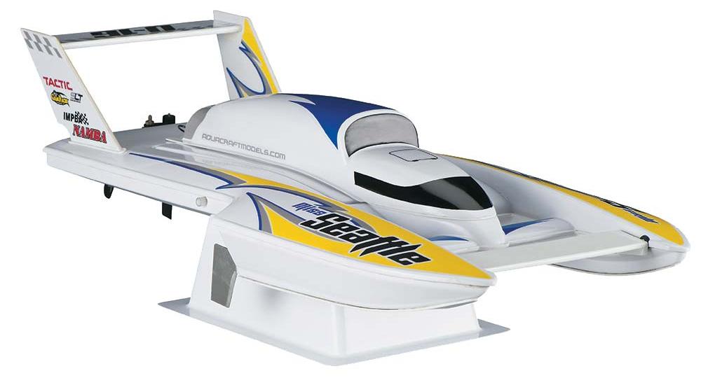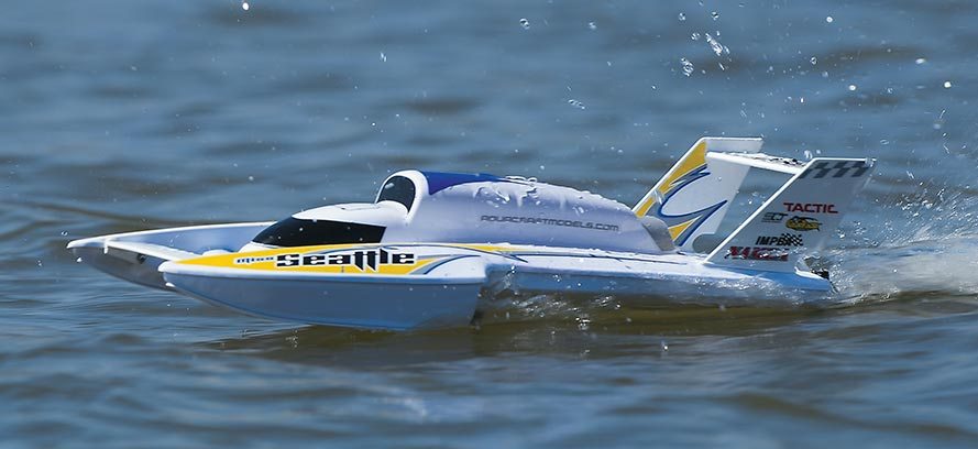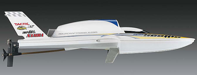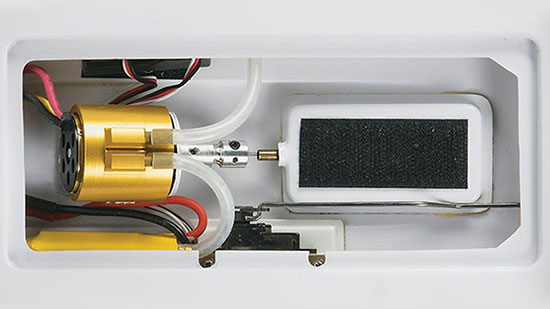 Modellen er ferdigbygd med vannavkjølt 2200 KV børsteløs motor, proff Tactic 2,4 GHz 3-kanals rattradio med mottaker, 30A fartsregulator, ror og styreservo montert.