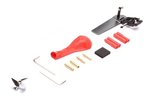 3-bladet propell og fleksaksel. CNC aluminium ror og solid oppstillingskrybbe.