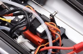 37gr vanntett styreservo og 2,4 GHz 2-kanals radio med mottaker montert.