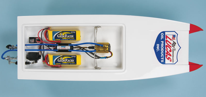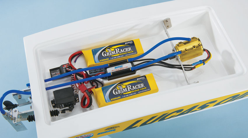 RTR-versjon med ferdigmontert 2,4 GHz Tactic TT240 radiosystem, vannkjølt 6-polet 1800kV GrimRacer bøsteløs motor, 60A vannkjølt fartsregulator og high performance GrimRacer 2535 hydro/car ror og propellutstyr.