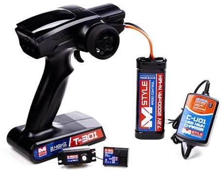 Radiosett inkl. mottaker, styreservo, batteri og lader