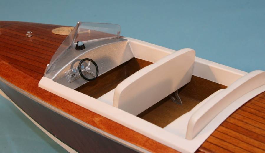 Støpt cockpitinnredning, ratt, master, dekksdetaljer, messing ror, aksel og propell, dekaler, oppstillingskrybbe, fullskala tegninger og byggebeskrivelse.