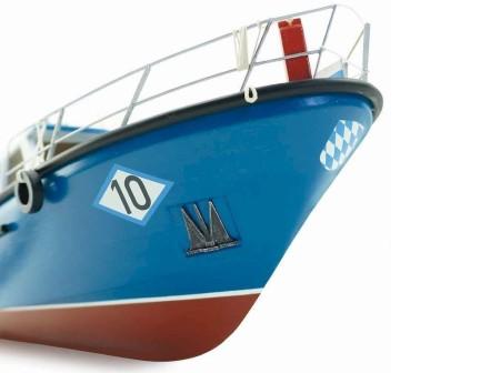 Støpte dekksdetaljer, redningsbøyer, master, rekker, tauverk, omfattende messing detaljer, 2 stk aksel og propell, gummi fenderlist og fendere, dekaler, oppstillingskrybbe, fullskala tegninger og byggebeskrivelse.