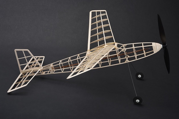 Byggesettet inkluderer laserkuttet balsaspanter og lister for bygging, understell, hjul, propell, hvit betrekning cockpitglass samt fullskala tegninger.